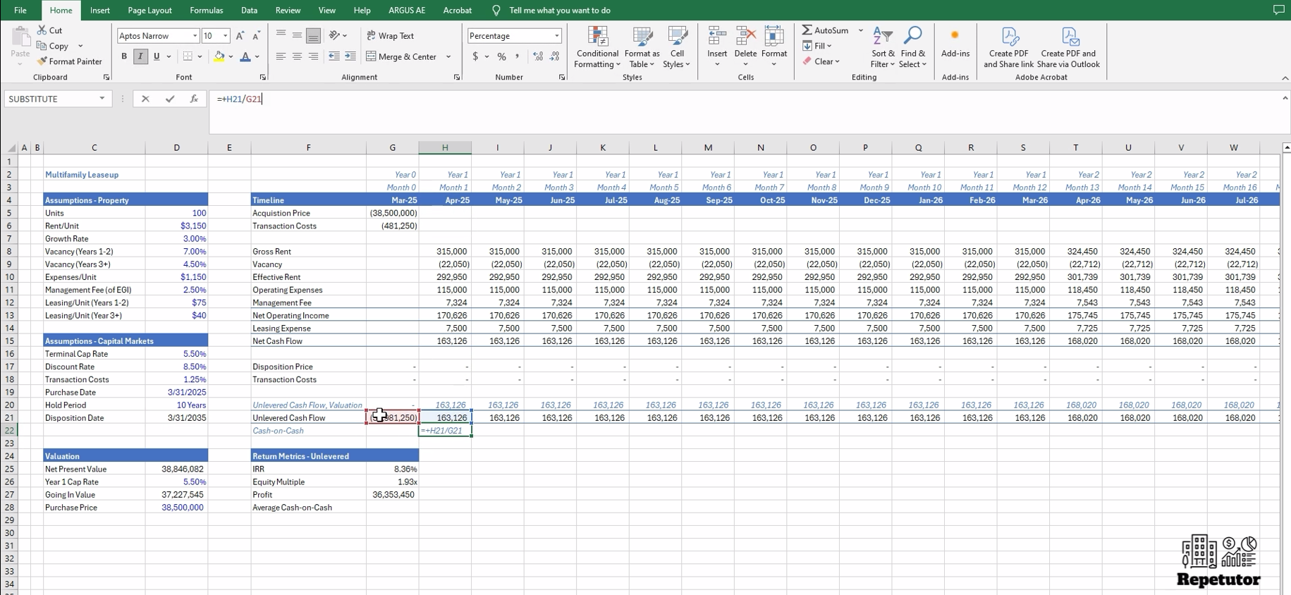 Solve for unlevered IRR & cash-on-cash